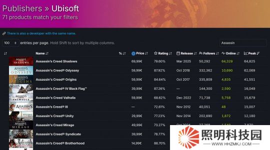 SteamDB官推宣布,《刺客信條:影》Steam在線峰值達(dá)到64825人,終于超過(guò)2018年游戲《刺客信條:奧德賽》(62069人),正式成為該系列在Steam平臺(tái)在線峰值最高的一作。