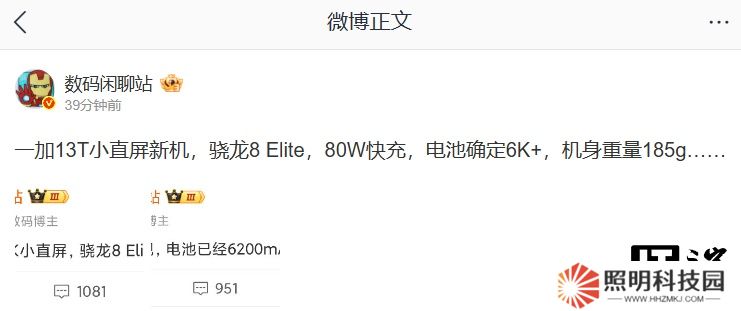 《小尺寸 + 大電池同時(shí)實(shí)現(xiàn),一加 13T 手機(jī)電池容量超 6000mAh》