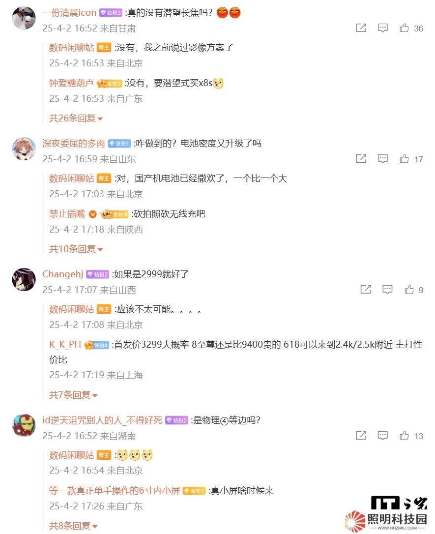 博主還在評(píng)論區(qū)回復(fù)了部分網(wǎng)友的問題:針對(duì)一加 13T 是否沒有潛望長焦鏡頭,博主稱“沒有,我之前說過影像方案了”;針對(duì)電池技術(shù)是否有提示,博主表示“對(duì),國產(chǎn)機(jī)電池已經(jīng)撒歡了,一個(gè)比一個(gè)大”;針對(duì)新機(jī)是否為是物理四等邊設(shè)計(jì),博主回復(fù)“”。