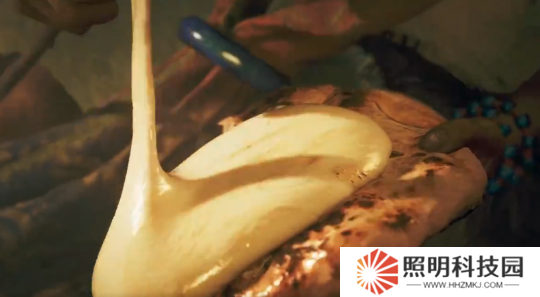 一直以來,《怪物獵人》系列中的食物都有著極為突出的表現力,看起來秀色可餐。團隊在制作這些食物時,會更注重食物的質地和味道,而非復雜性。游戲的藝術總監藤岡就曾透露: