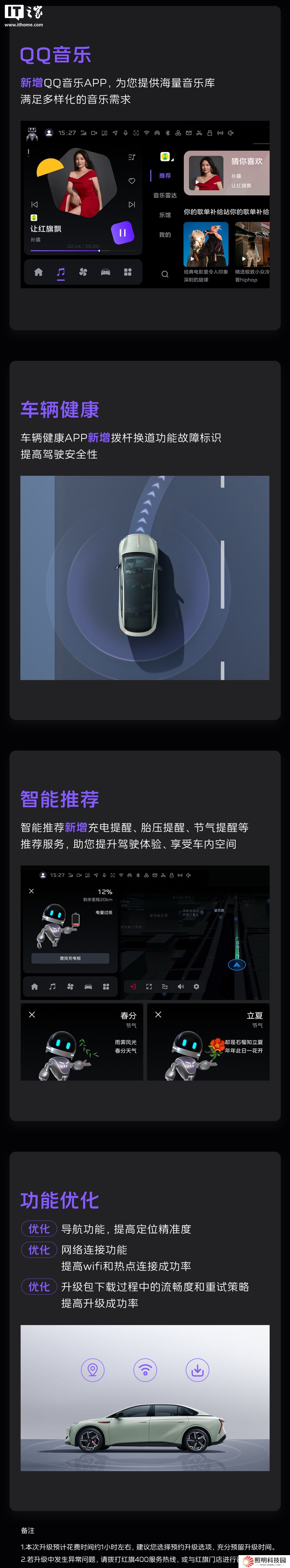 本站整理一汽紅旗 EH7 汽車此次 OTA 更新內容如下: