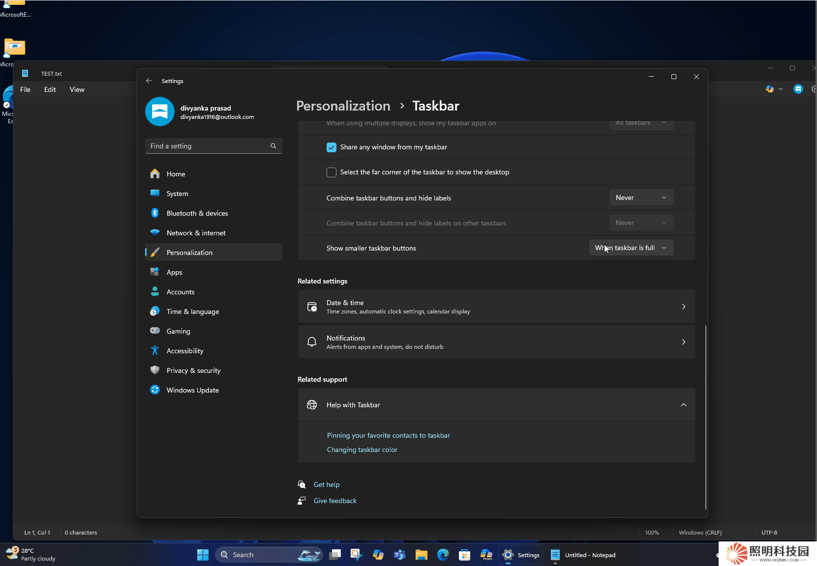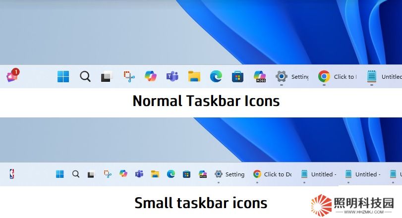 正如前文所述,用戶可以在“任務(wù)欄行為”部分的“任務(wù)欄設(shè)置”中更改任務(wù)欄處理應(yīng)用程序圖標(biāo)的方式,然后從“顯示較小的任務(wù)欄按鈕”中選擇上述任一選項(xiàng)。