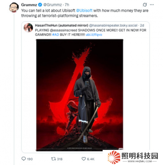 Grummz的推文,針對的就是Hasan在動態中對《刺客信條:影》的稱贊。對此,他提出了不同意見:“從育碧砸錢支持恐怖分子主播這件事上,你就能看出這家公司很多問題。”