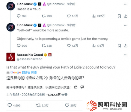 而一石掀起千層浪,這番話很快也引來了《刺客信條:影》官推賬號的關注,后者攻擊性十足的回復馬斯克:“這是那個幫你玩《流放之路2》賬號的人告訴你的嗎?”