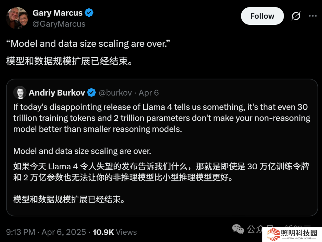 而 Llama 4 的慘淡表現,也讓 NYU 教授馬庫斯寫出長文,斷言 Scaling 已經結束,LLM 仍然無法推理。