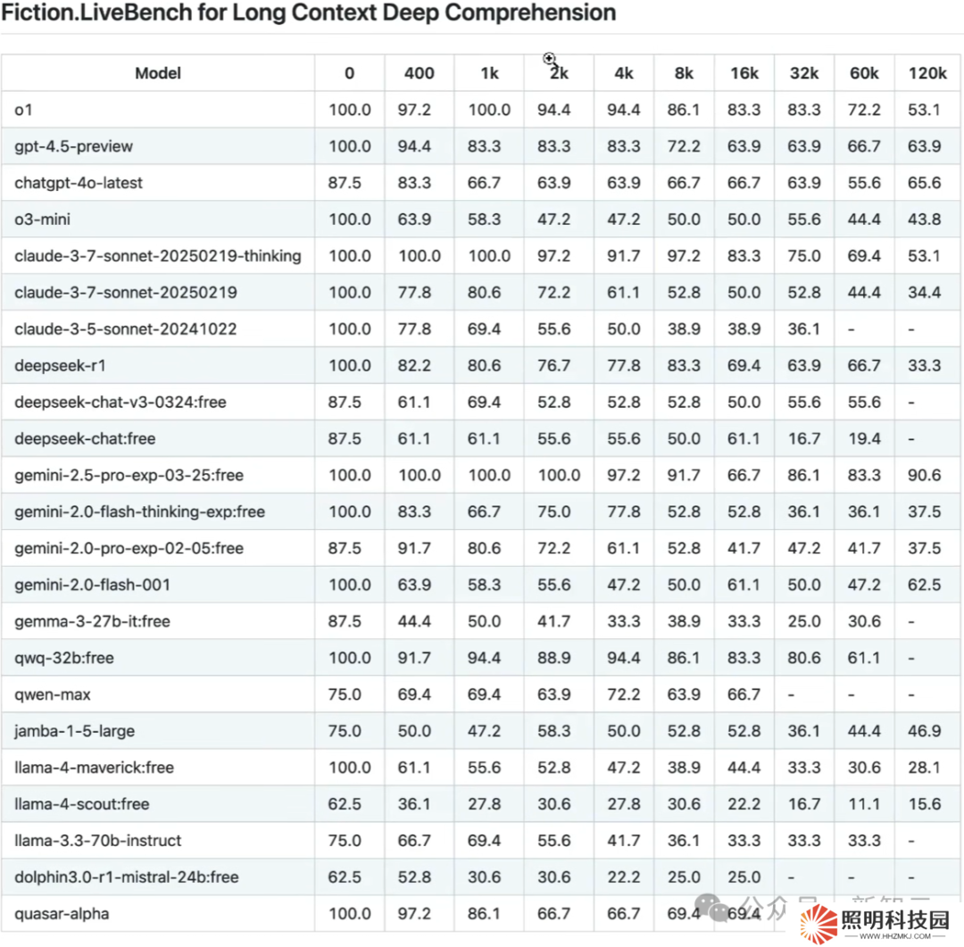 不過,這位 CEO 表示,這些 48h 前發布的結果,不如 24 小時前更新的這個 fiction livebench 基準測試這么重要。