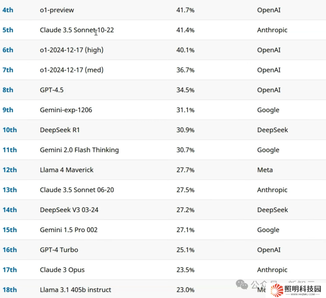 在這里,在這個基準測試中,Gemini 2.5 Pro 的表現非常好,而相比之下,Llama 4 的中等模型和小模型,性能極其糟糕。
