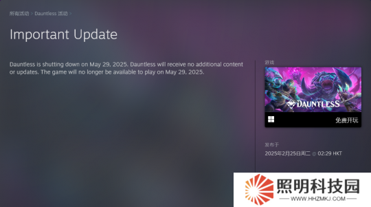 開發(fā)商 Phoenix Labs 日前在 Steam 和社交媒體上宣布,免費類怪獵合作動作游戲《無畏(Dauntless)》將于 2025 年 5 月末關服。