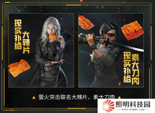 4月1日至6月30日期間,前往天貓、京東、拼多多、抖音和快手的源氏食品旗艦店即可購買聯動補給——螢火突擊聯名大辣片和素大刀肉。此外,本次聯動活動還提供限時任務和豐厚獎勵,參與游戲內活動即可贏取限定豬廠頭套等外觀,辣條在手,猛攻更火辣!
