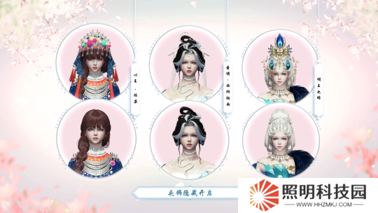 明王九雛·初鳳、明王九雛、吹雪霓裳、心王·試問天心、心王·瑤姿、圣繡·西湖煙雨、風華·瑯嬛、風華·彼岸開放發飾隱藏。