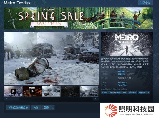 《地鐵:逃離》于2019年2月發售,目前正在Steam春季促銷中,原價148元,現降價75%,售價37元(史低價為14.8元),支持簡體中文。該作獲得玩家“特別好評”評價。