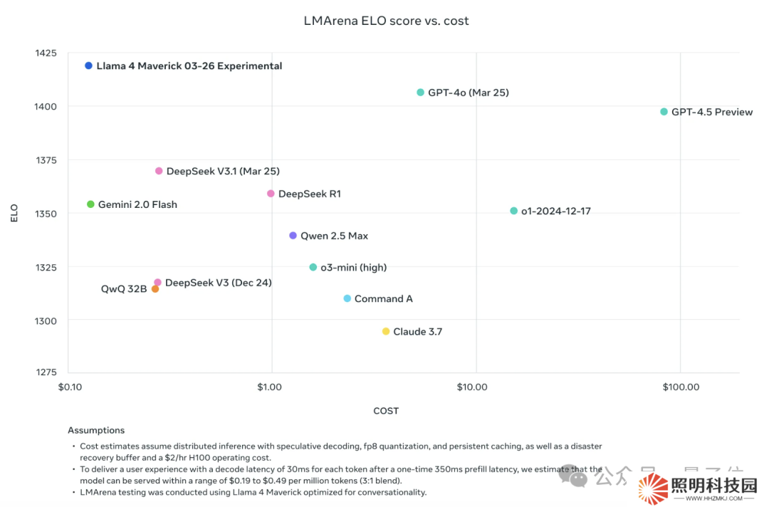 系列超大杯 Llama 4 Maverick,不僅超越了同類型號其它模型,價格還非常之美麗。