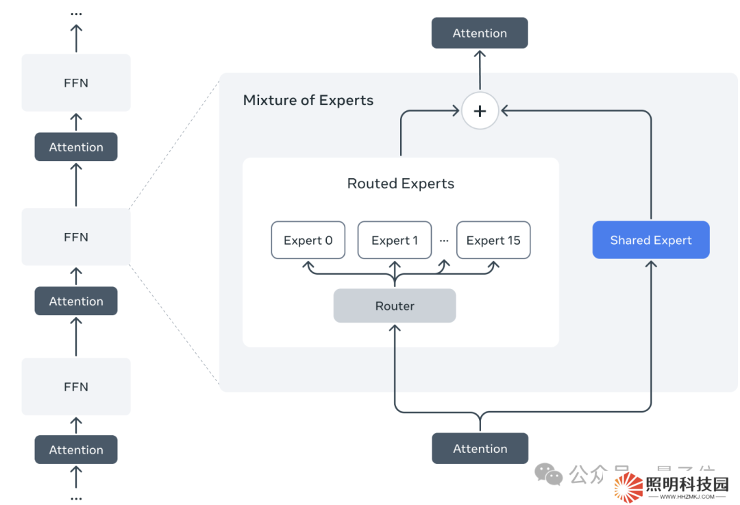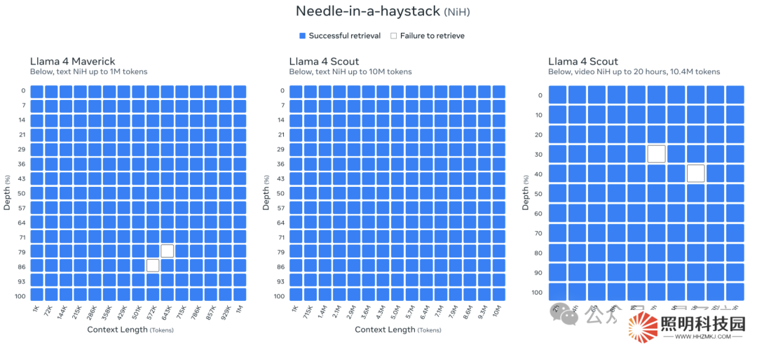 這些他們稱之為 iRoPE 架構,其中“i”代表“交錯”注意力層,突出了支持“無限”上下文長度的長期目標,而“RoPE ”指的是大多數層中采用的旋轉位置嵌入。