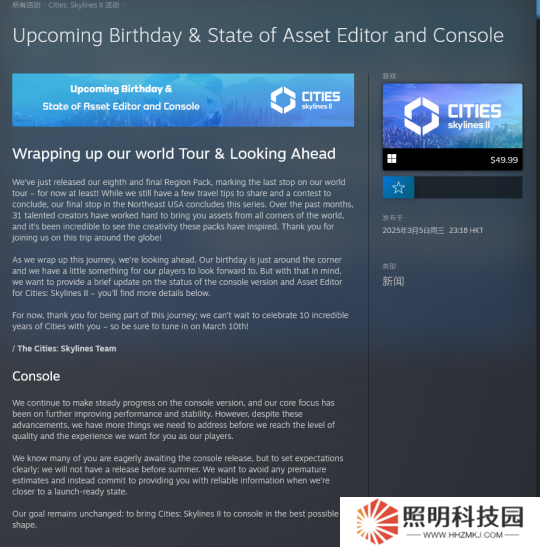 《城市:天際線2》主機(jī)版至少要到今年夏季之后才發(fā)布