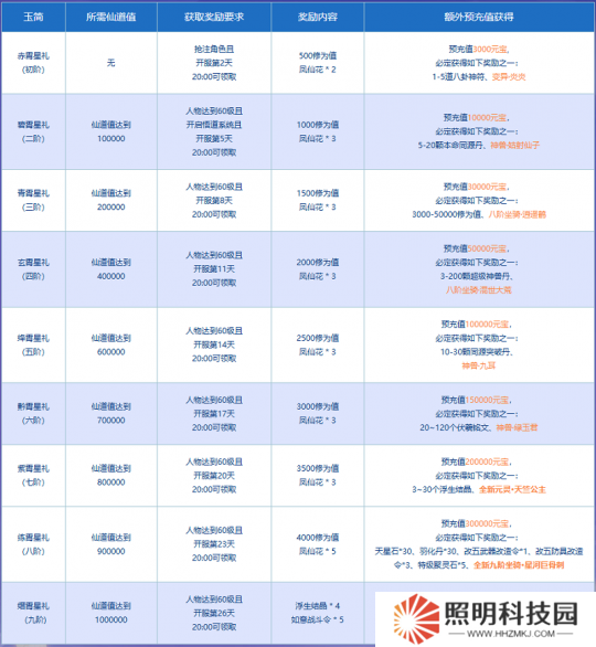 玩家在新服角色搶注期間注冊角色和進行預充值都可以獲得仙道值,在開服后根據累積的仙道值可以激活不同檔次的九霄星禮。