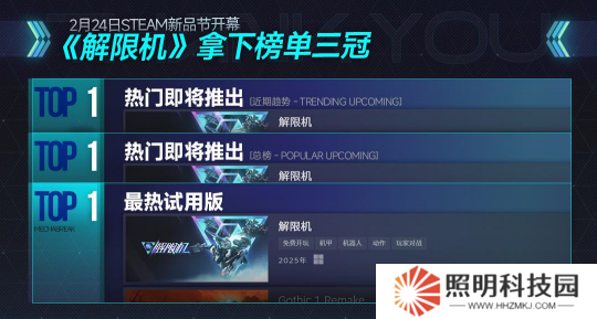 活動上線初始,《解限機》便成功包攬了新品節的三項榜單第一:熱門即將推出(趨勢榜/總榜),以及最熱試用版榜。