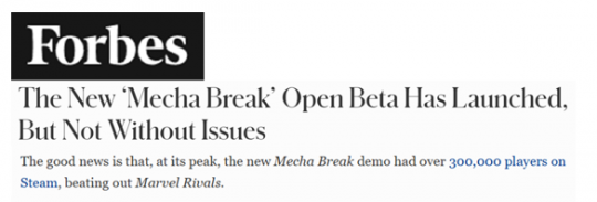 IGN:“《解限機》的高速戰斗令人聯想到《飛翼高達》的經典記憶,操作流暢如《龍珠》。”(來源:IGN《Mecha Break: The Final Preview》)