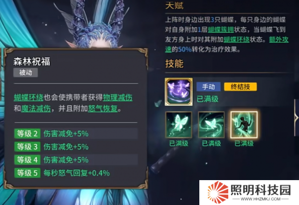 而她的被動技能“輕柔蝶翼”和“森林祝福”更是錦上添花。“輕柔蝶翼”每2秒會有50%的概率幫助隊友驅散負面狀態,而“森林祝福”則會賦予隊友物理和魔法雙重減傷效果,還能讓攜帶“蝴蝶環繞”的單位快速恢復怒氣,這也讓塔露拉成為隊伍中的一個怒氣加油站和狀態清除器。