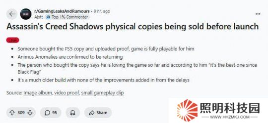 然而,《刺客信條:影》自公開以來,就因為角色設定飽受爭議。中途兩次跳票,都讓人開始質疑育碧是否缺乏信心。而在此距離游戲發布不足一個月的時間里,網上又傳來噩耗——《刺客信條:影》現已搶先偷跑。