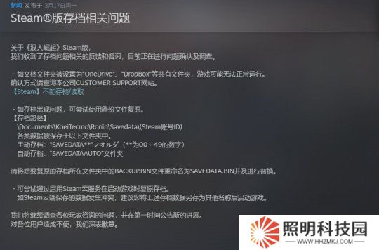對此,Team Ninja官方X賬號發(fā)布了消息,稱正在調(diào)查《浪人崛起》PC Steam版玩家反應(yīng)的存檔問題。該帖子鏈接到官網(wǎng)支援板塊,為玩家提供了解決該問題的潛在方法,包括查找備份保存數(shù)據(jù)、在保存到Steam Cloud時遵循額外步驟,或關(guān)閉Google Drive、OneDrive或Dropbox的文件共享。