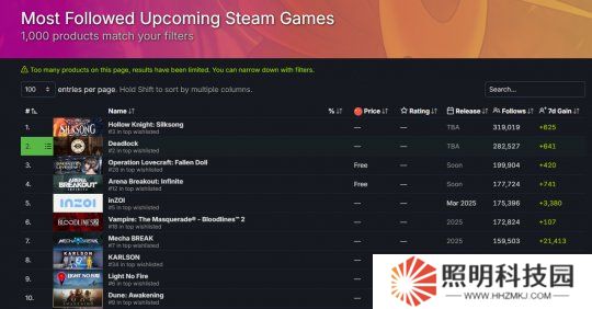 日前,在Steam“最受關注的未發布游戲”榜單上,《絲之歌》力壓V社的《DeadLock》沖上了第一位。而在這份榜單上的作品,普遍都是未公布發售日期的話題作品。