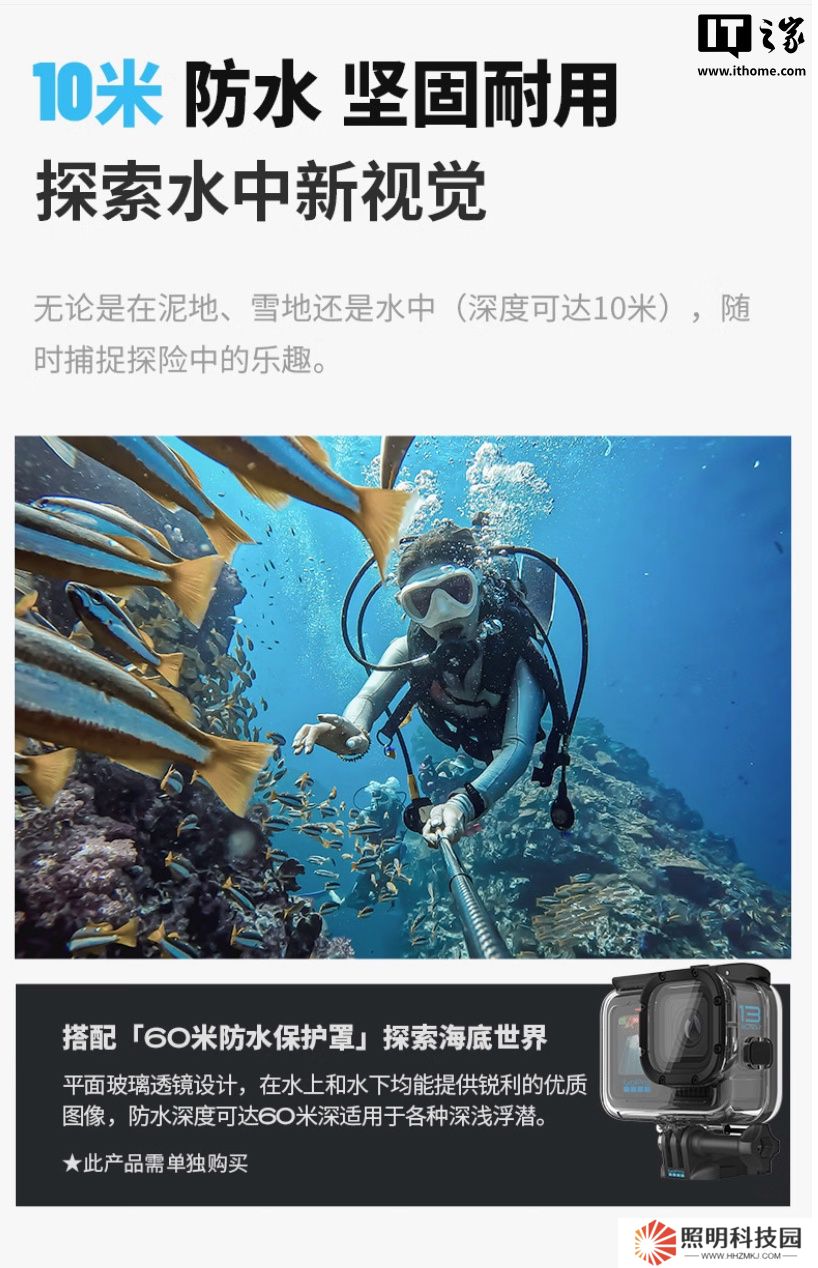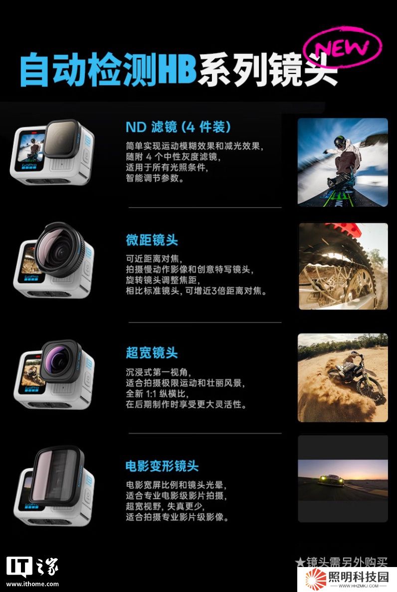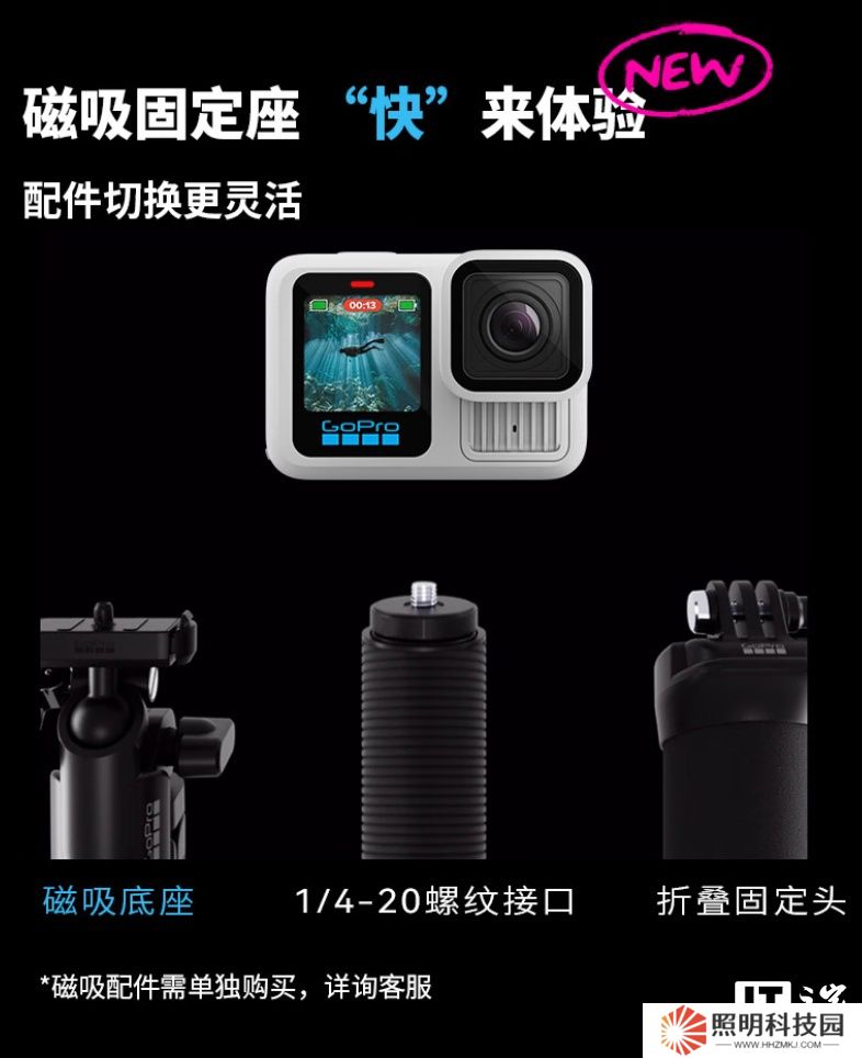根據 GoPro 官方所述,該“極域白”配色運動相機“數量有限,但樂趣無邊”,可搭配 HB 系列磁吸鏡頭 / 濾鏡使用,在裝上 HB 系列鏡頭 / 濾鏡后相機可自動檢測,自動優化相差 / 畸變等。