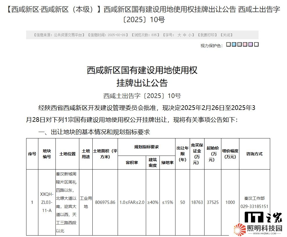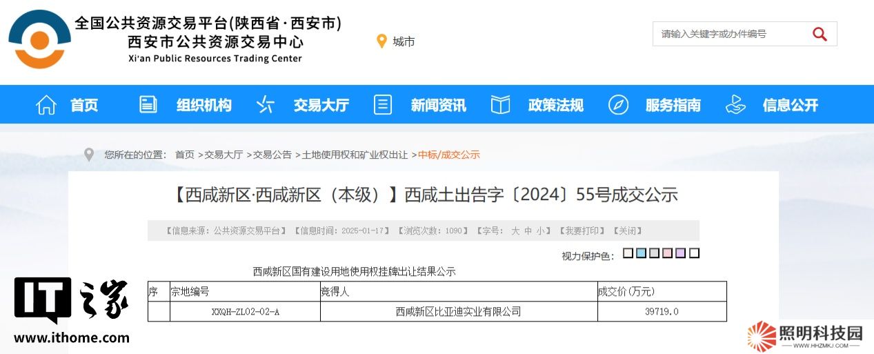 本站 4 月 4 日消息,西安市公共資源交易中心 3 月 28 日公告顯示,比亞迪全資子公司西咸新區(qū)比亞迪以 3.7525 億元競(jìng)得西咸新區(qū)一塊國(guó)有建設(shè)用地使用權(quán)。