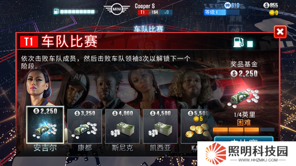 4、在車隊界面中玩家們可以看到比賽的難度和可以獲取的獎勵,點擊去比賽。