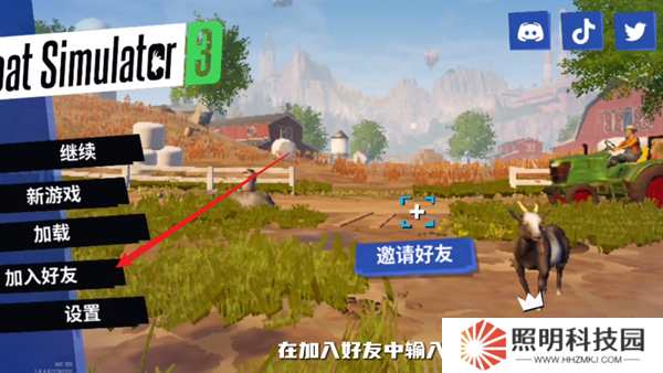 1、玩家們進入到模擬山羊3的主界面之后,點擊中間的邀請好友按鍵。