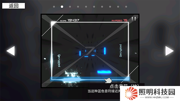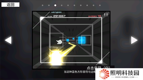 3、游戲采用四面+空間下落式節(jié)奏玩法,玩家需點擊下落的音塊。