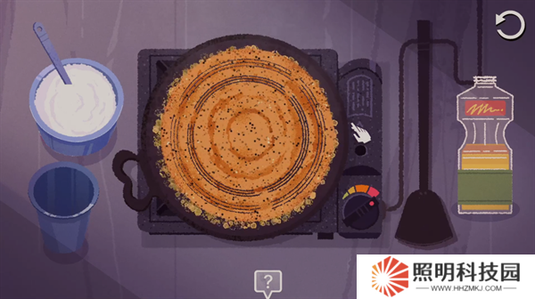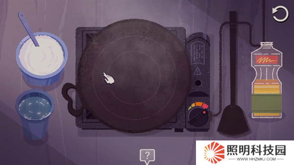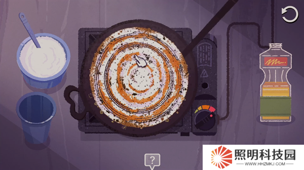3、然后玩家們點擊拖動右側(cè)的油瓶在煎餅周圍到上一點。