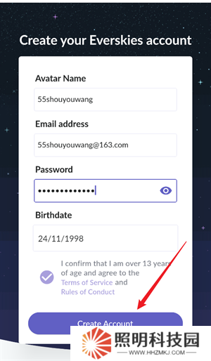 4、接下來就是創(chuàng)建賬號的環(huán)節(jié),從上至下需要輸入的依次是角色名稱、電子郵件、密碼以及生日。