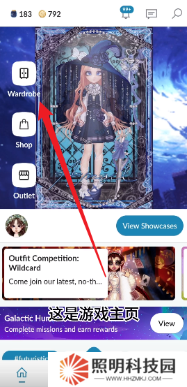 1、玩家們進(jìn)入游戲之后,首先在主頁當(dāng)中點擊Wardrobe進(jìn)入到自己的衣柜當(dāng)中。