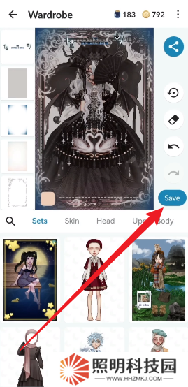 3、更換套裝之后點擊右側(cè)的Save圖標(biāo)。