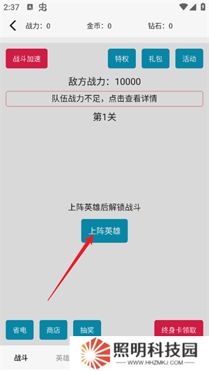 1、玩家們進入游戲之后,首先需要點擊上陣英雄,才能夠開始進行作戰(zhàn)。