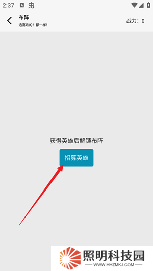 2、如果自己還沒有擁有角色,則需要點擊招募英雄來進行相應(yīng)的角色獲取。