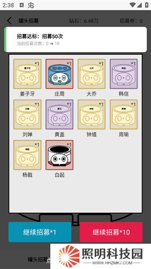 3、初始狀態(tài)之下,你將會擁有10張不同的招募券。可以點擊進行招募。