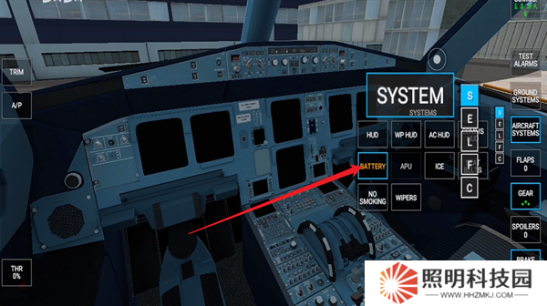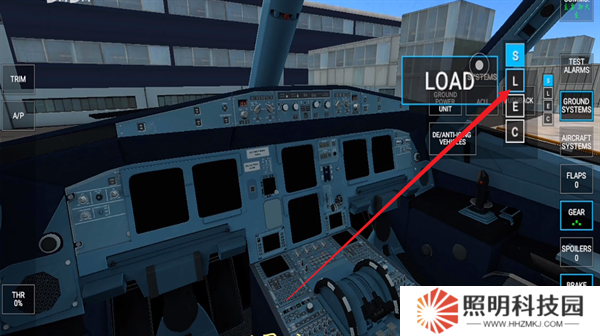 4、進入到飛行器的第一人稱模式當中,這里面存在著各種按鍵,每一種都會具有自己的功能,右側第一個是警報系統,第二個是地面系統,第三個是貨物,第四個是油量。