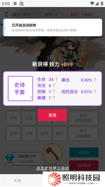 5、砍樹的過程之中會獲取到各種裝備,你將能夠為自己的角色進行裝備。