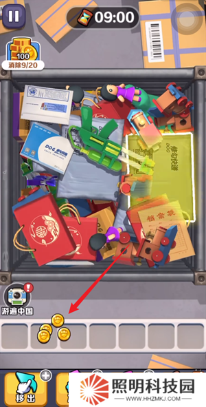 2、通過點擊,將框子里面的物品湊齊三個,就能夠將其進行消除。