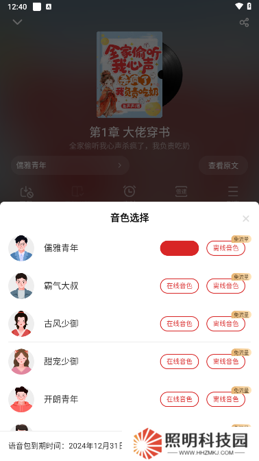 追書神器聽書怎么換聲音:1、直接聽書,然后點擊聲音就可以選擇不同的人聲了