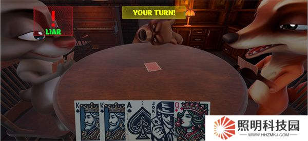 3、當(dāng)對(duì)手出牌后玩家們可以點(diǎn)擊左上角的liar進(jìn)行質(zhì)疑。