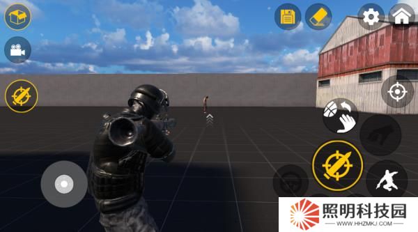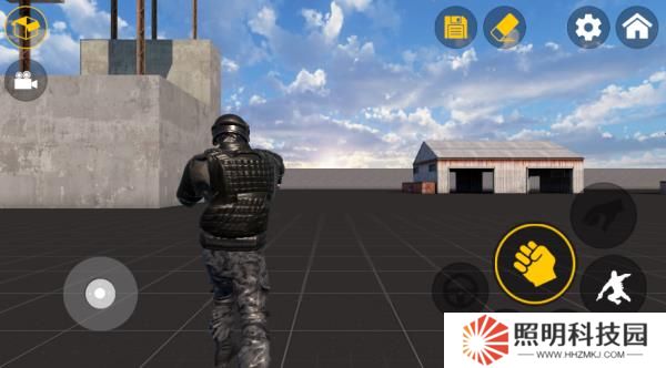 4、進入到場景內后玩家們滑動輪盤控制角色移動,點擊右側進行攻擊跳躍蹲下等操作。