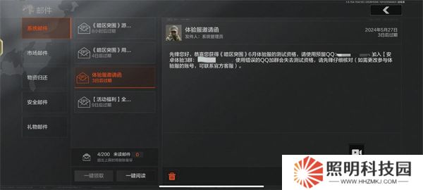 3、當玩家們獲取到資格之后,將會在游戲內部收到如下的郵件,根據郵件指引申請QQ群,即可進入到體驗服當中游玩。