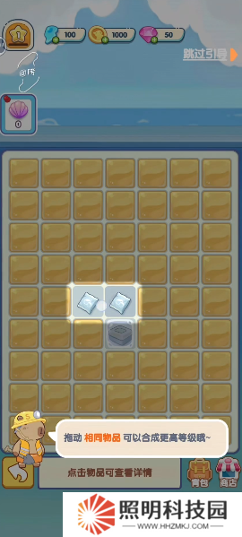 1.建設的工作需要進行各種物品的合成,你需要在一定的范圍內將兩個相同的物品進行合成,就能夠獲取到更高級的物品。