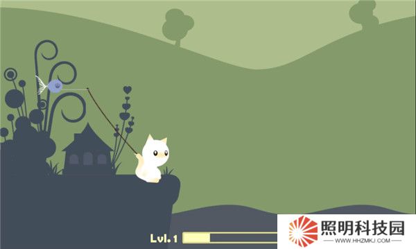 1、玩家們進入關卡之后,首先需要操控自己的小貓角色來進行拋竿的動作。