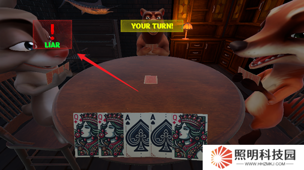 2、游玩的過(guò)程中玩家們需要出牌進(jìn)行撒謊或者別人出牌進(jìn)行質(zhì)疑,以此來(lái)獲得對(duì)局的勝利。