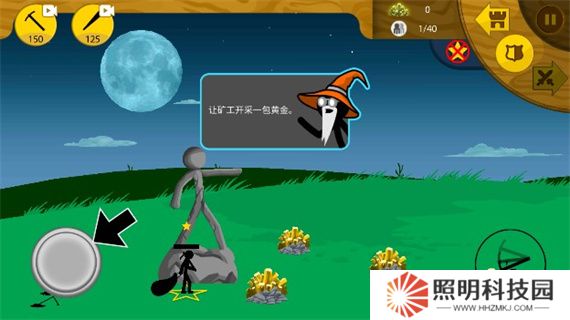 4、進入關卡之后你可以派出各種火柴人來進行作戰,此外你還能夠通過左下角的輪盤來控制火柴人。