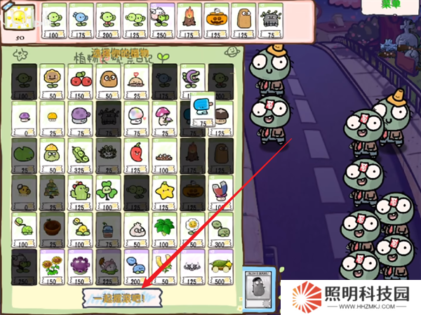 1、玩家們首先需要挑選自己出戰(zhàn)的各種植物卡牌,并點(diǎn)擊下方的一起搖滾吧來(lái)開(kāi)始進(jìn)行戰(zhàn)斗。