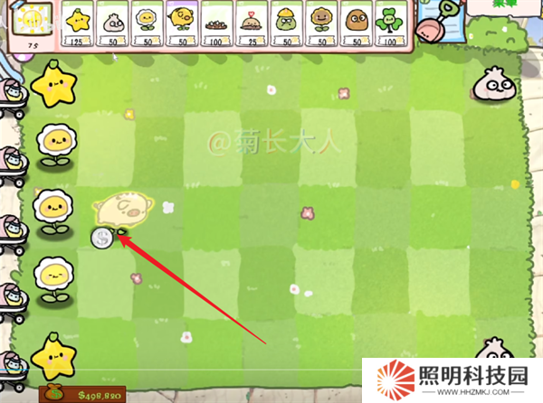 2、消耗50陽(yáng)光就可以將金豬存錢草種植在場(chǎng)景的格子上面。